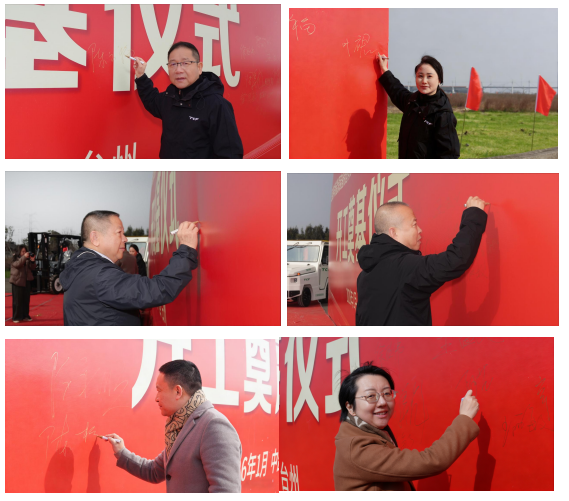 现场彩旗飘扬,奠基仪式在庄重而热烈的氛围中正式开始。台州市、区相关领导、公司股东、合伙人以及TCF核心团队百余人齐聚一堂,共同见证这一历史性时刻。