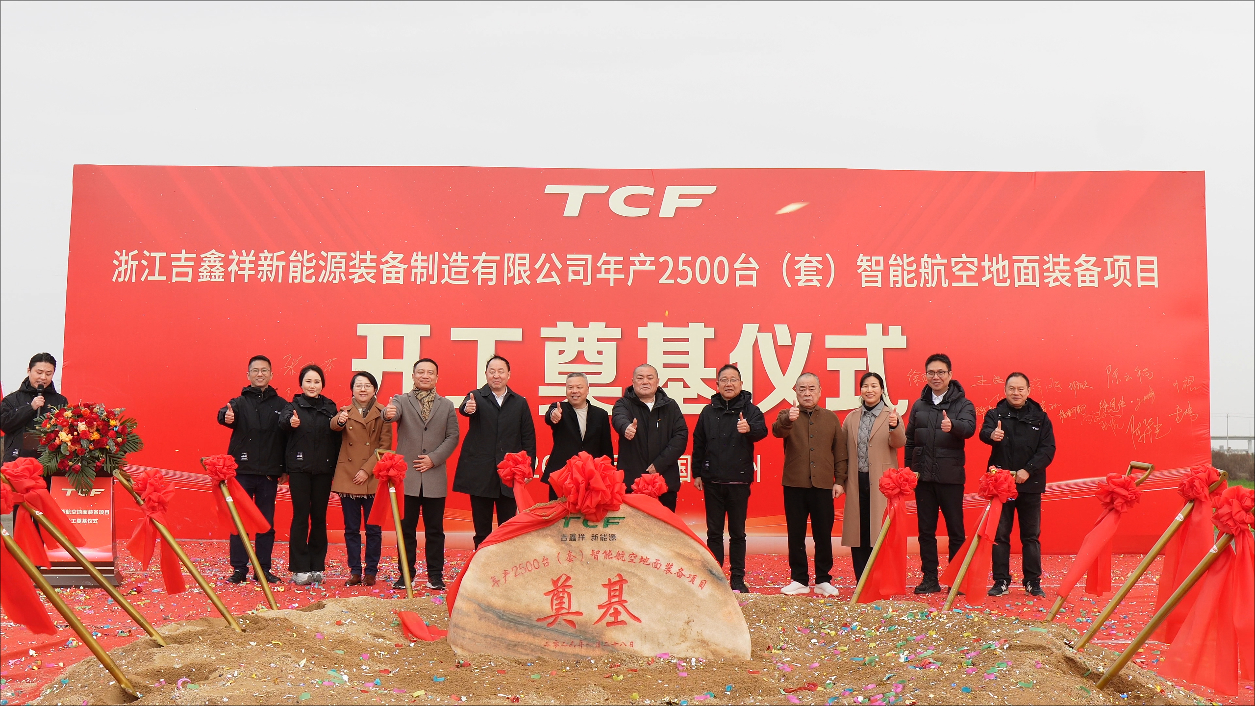 2026 年 1 月 28 日上午,吉鑫祥新能源年产2500台(套)智能航空地面装备项目奠基仪式在台州市一江山大道以北、聚海大道以东的新厂区隆重举行。这标志着浙江吉鑫祥新能源装备制造有限公司在深耕民航地面设备领域、推动产业智能升级的宏伟蓝图上,迈出了具有里程碑意义的关键一步。